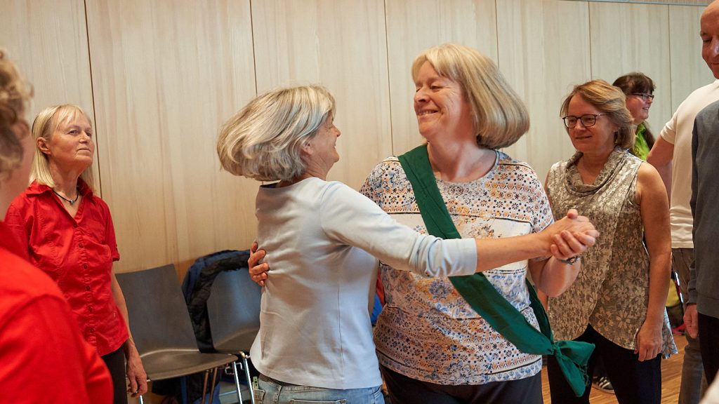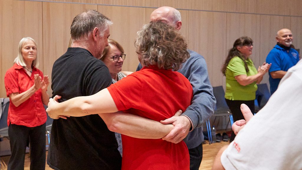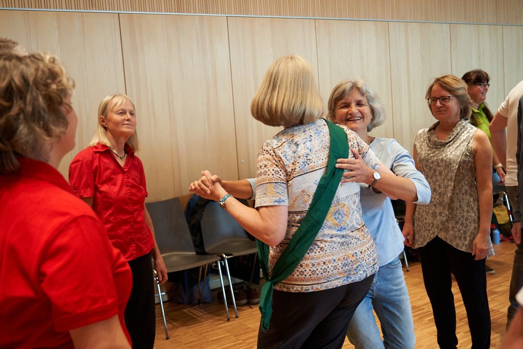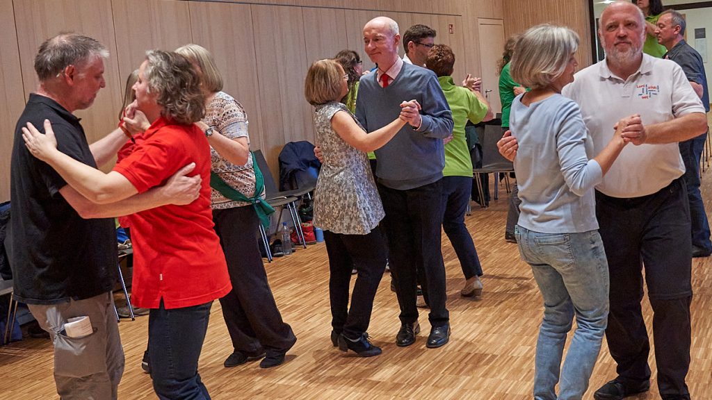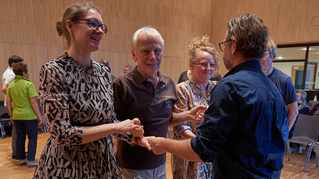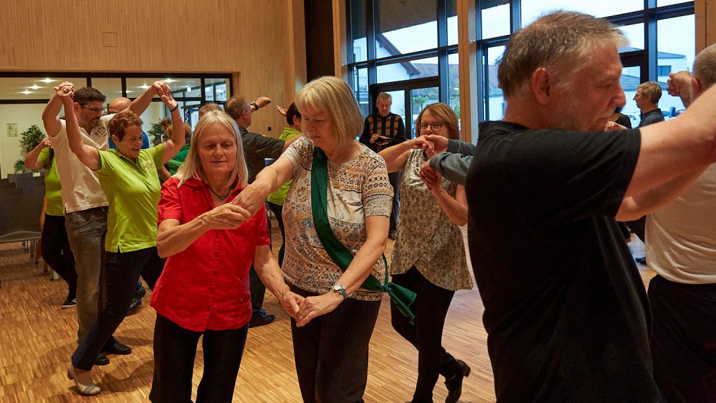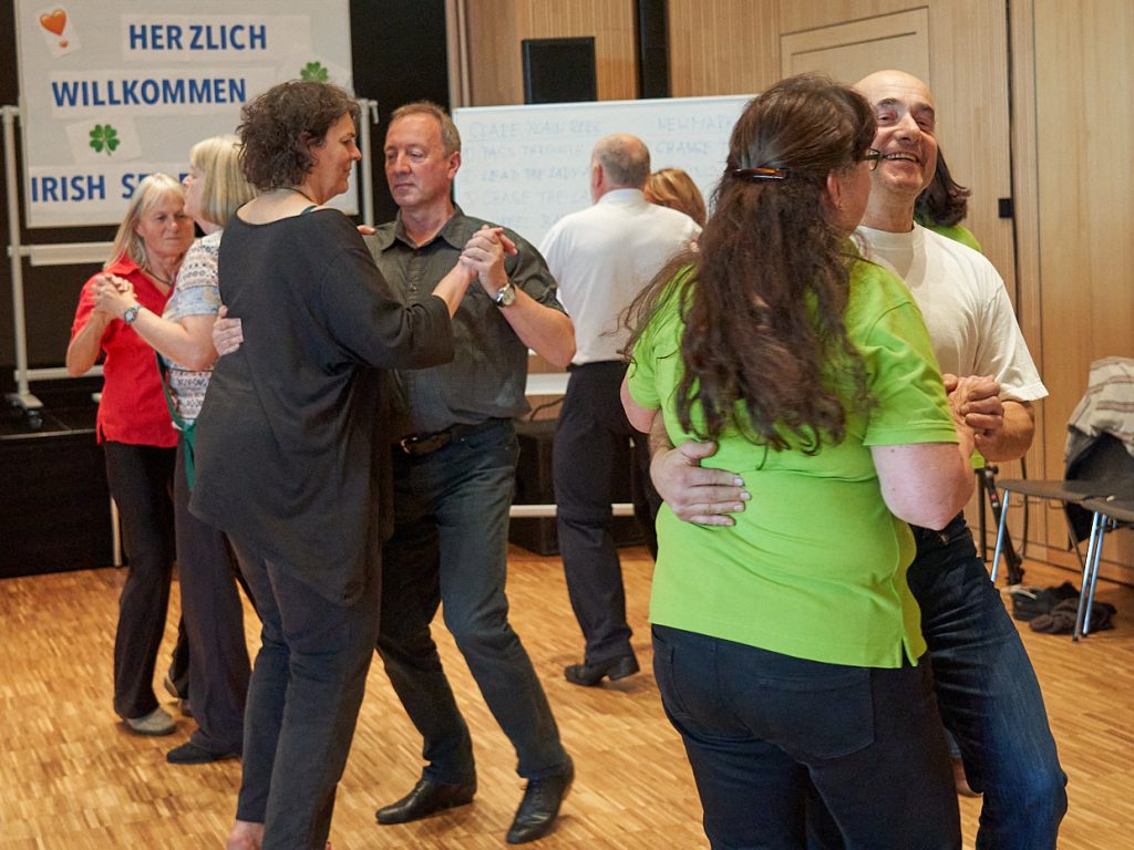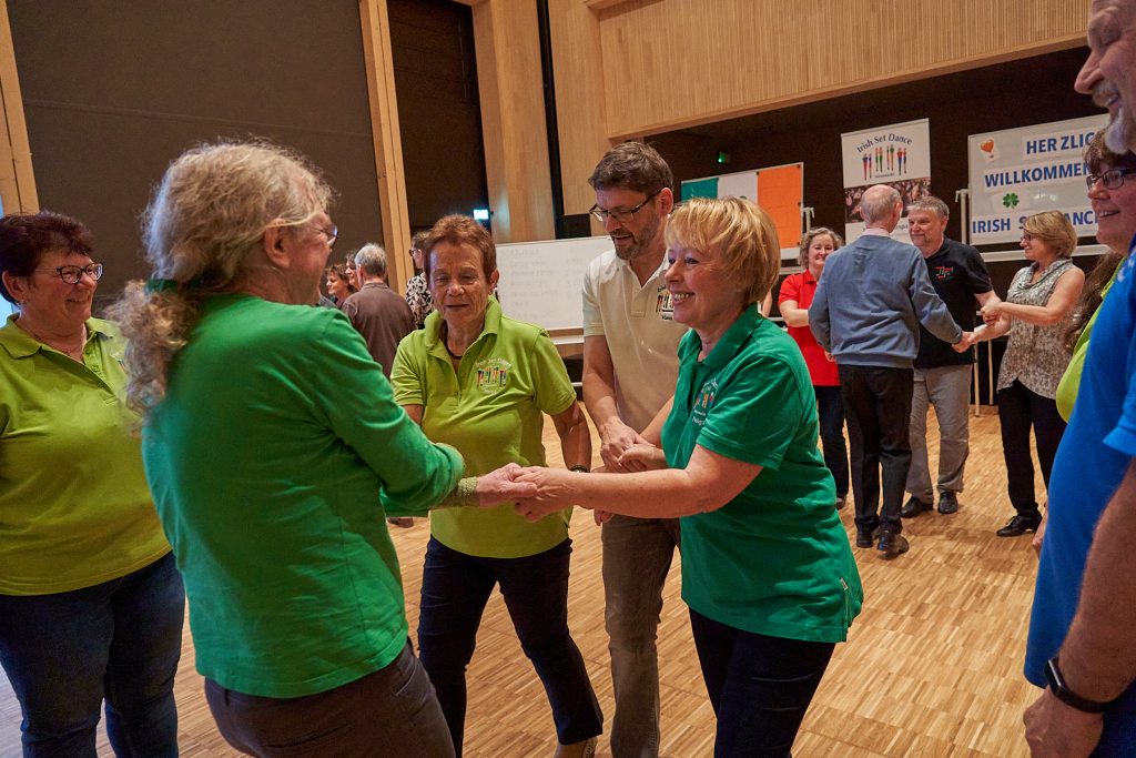 Tänzer und Zuschauer erfreuten sich an den rund 40 Tanzfiguren, die auf dem Programm standen. Gleich mehrere tanzinteressierte Zuschauer nahmen die Gelegenheit wahr, Irish Set Dance an der Seite erfahrener Tänzer spontan selbst auszuprobieren. Die lächelnden Gesichter zeigen, dass es ihnen offensichtlich gut gefallen hat.