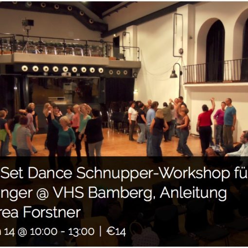 Wer beim lebensfrohen Klang irischer Musik schon immer Lust verspürte, zum mitreißenden Rhythmus mitzutanzen, hat hier viel Gelegenheit dazu. Keine tänzerische Vorerfahrung nötig, auch ohne eigenen Tanzpartner möglich, geeignet für jedes Alter.