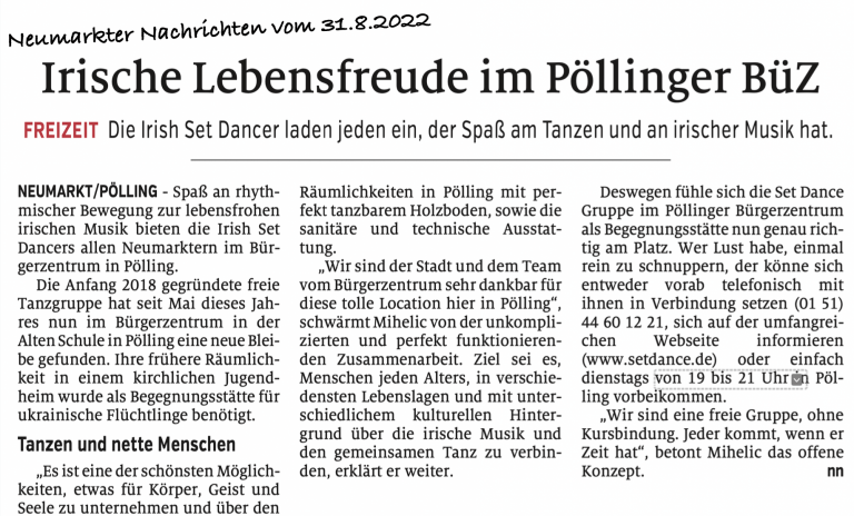 Das Set der Neumarkter Irish Set Dancers! Irgendwie ist es naheliegend, das Heimat-Set aus Newmarket, Co. Cork, zum Set der […]