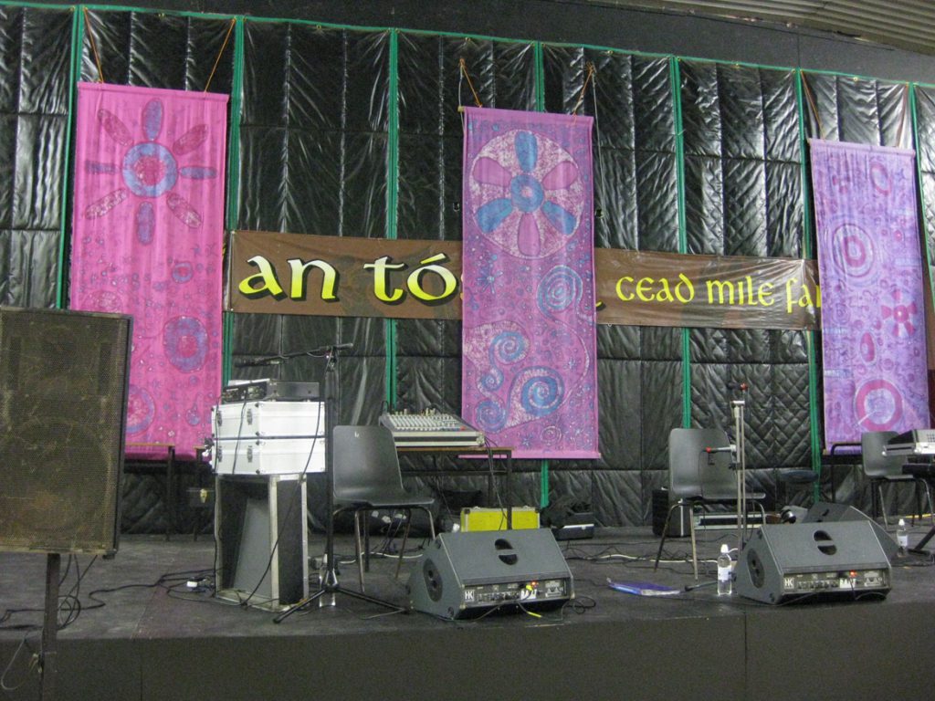 Nach den Workshops am Vormittag – teilweise am Nachmittag – finden abends viele Vorträge und Vorführungen bekannter Künstler statt. Ebenso erhalten Teilnehmer der Workshops die Gelegenheit, auf der Bühne ihr eigenes Lernergebnis der Öffentlichkeit vorzustellen – auch aus dem Bereich Set Dance. So kann man sich, wenn man mag, ganz schnell auf der Bühne wiederfinden 😉 .