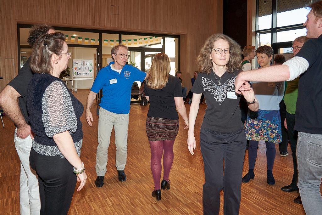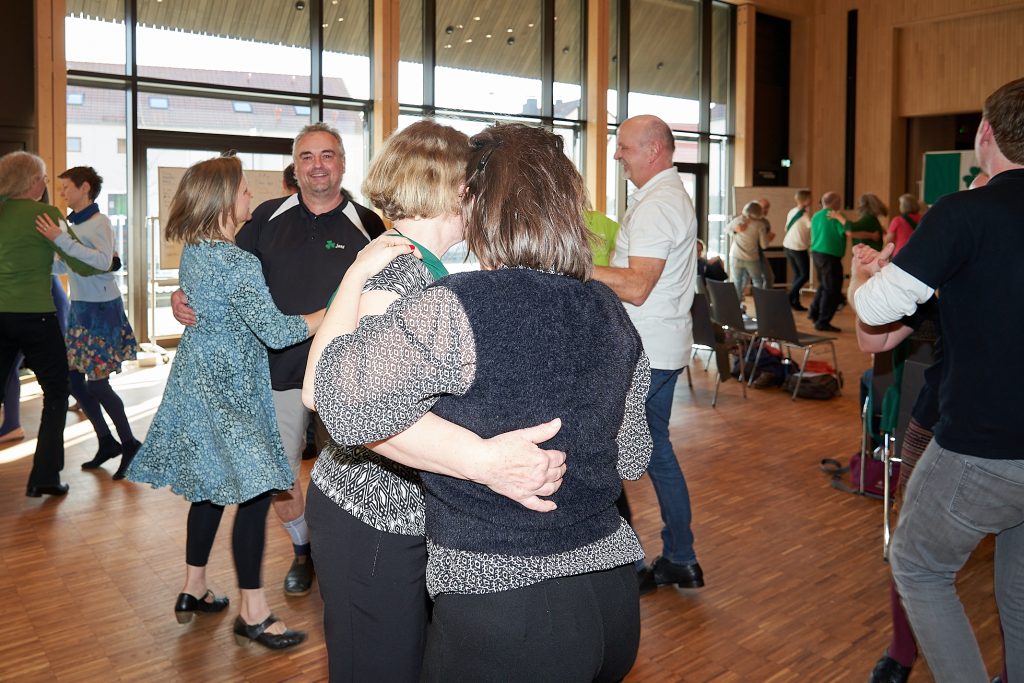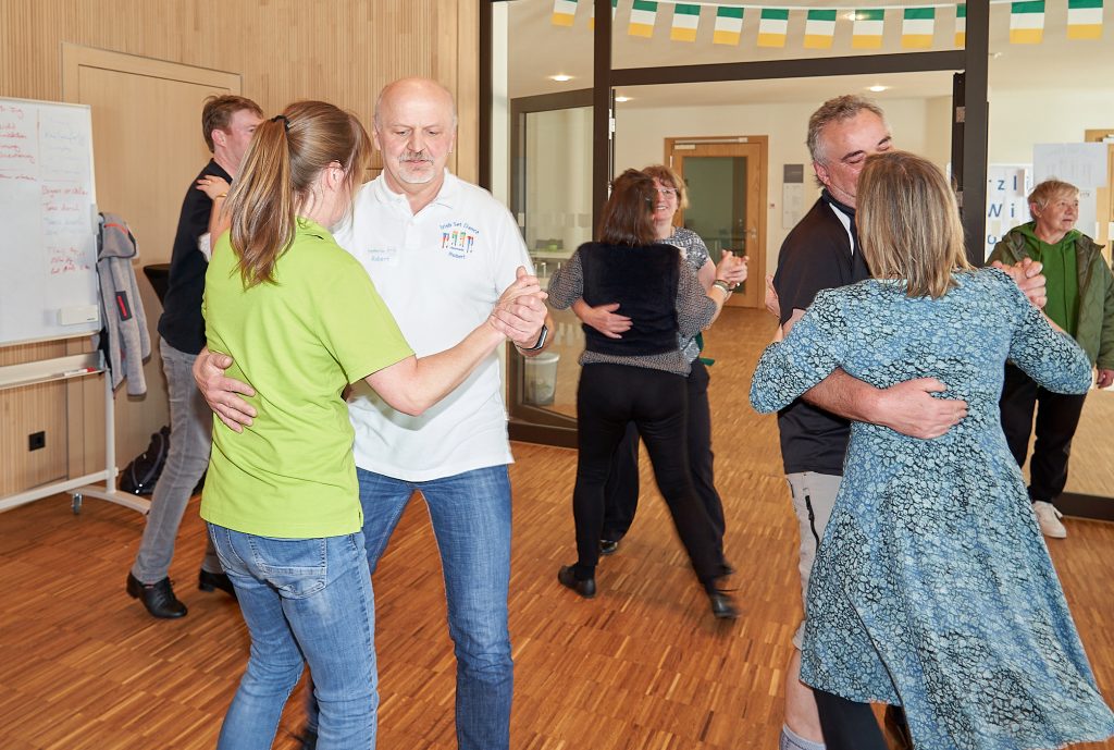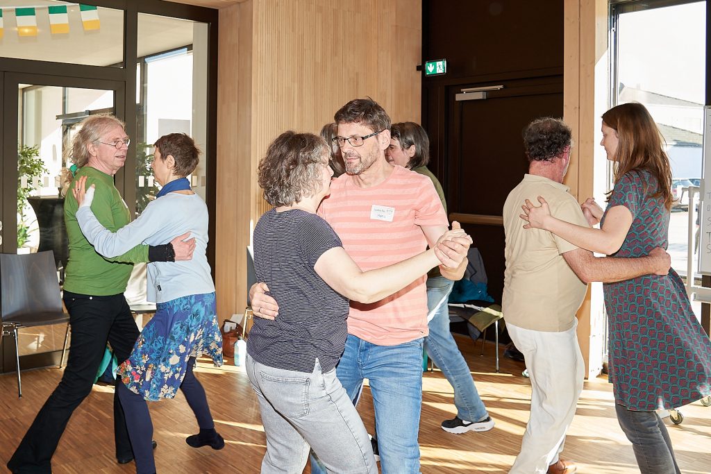 Der gemeinsame Abend wurde schließlich rege genutzt, um den Tag mit Erfahrungsaustausch und Gesprächen ausklingen zu lassen. Gemessen an den vielen persönlichen Feedbacks und den Antworten im vorbereiteten Feedbackbogen fühlten sich die Tänzer sichtlich wohl, nicht zuletzt auch angesichts des gelobten Mittagsmenüs und des umfangreichen Kuchen-Buffets mit erfrischenden Warm- und Kaltgetränken in den Pausen; letzte Übernachtungsgäste machten sich erst kurz vor Mitternacht auf den Weg ins Hotel.