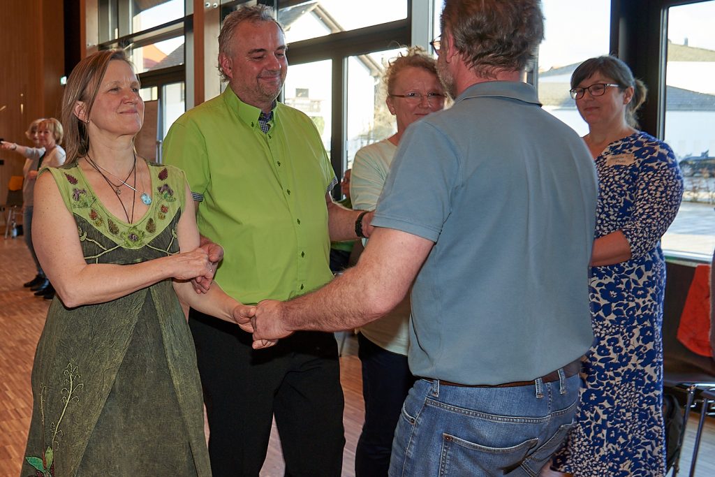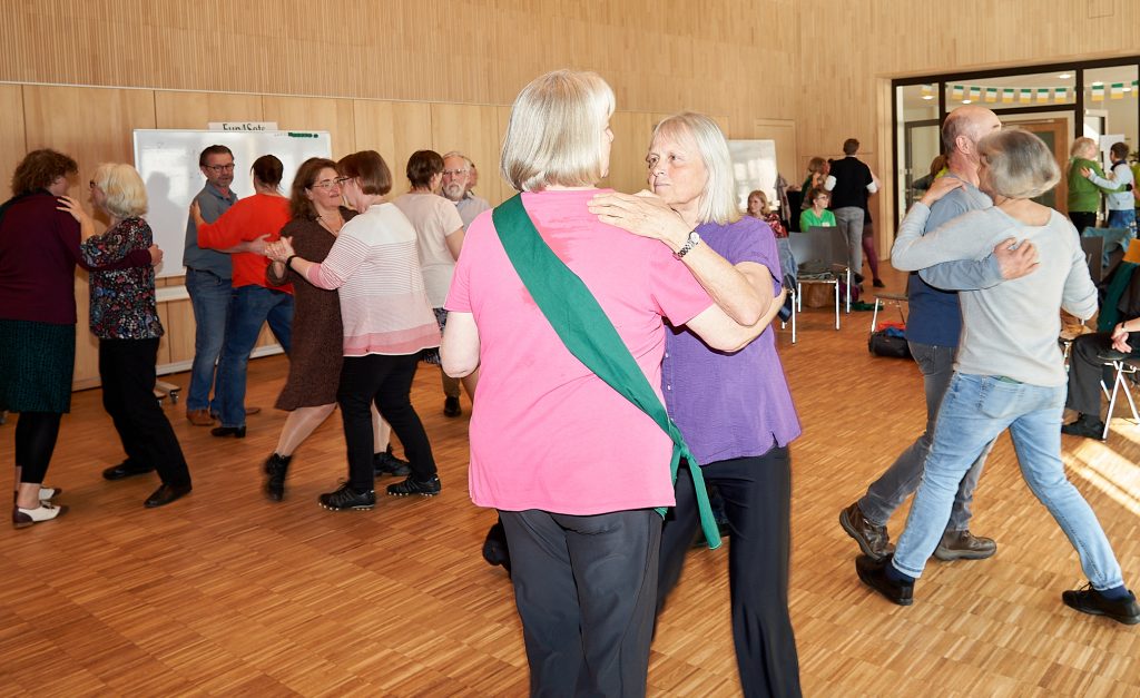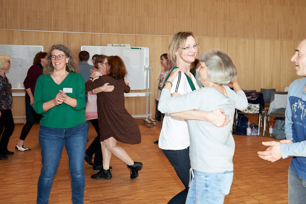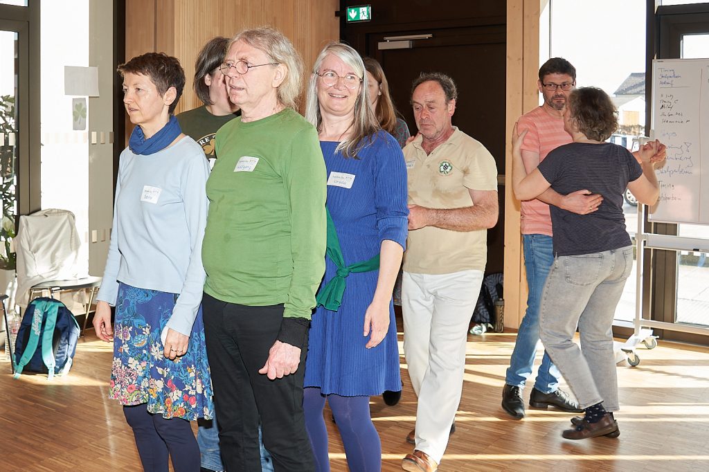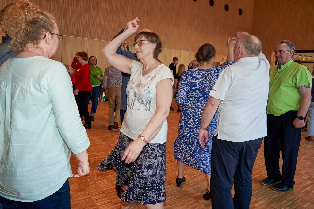 Der gemeinsame Abend wurde schließlich rege genutzt, um den Tag mit Erfahrungsaustausch und Gesprächen ausklingen zu lassen. Gemessen an den vielen persönlichen Feedbacks und den Antworten im vorbereiteten Feedbackbogen fühlten sich die Tänzer sichtlich wohl, nicht zuletzt auch angesichts des gelobten Mittagsmenüs und des umfangreichen Kuchen-Buffets mit erfrischenden Warm- und Kaltgetränken in den Pausen; letzte Übernachtungsgäste machten sich erst kurz vor Mitternacht auf den Weg ins Hotel.
