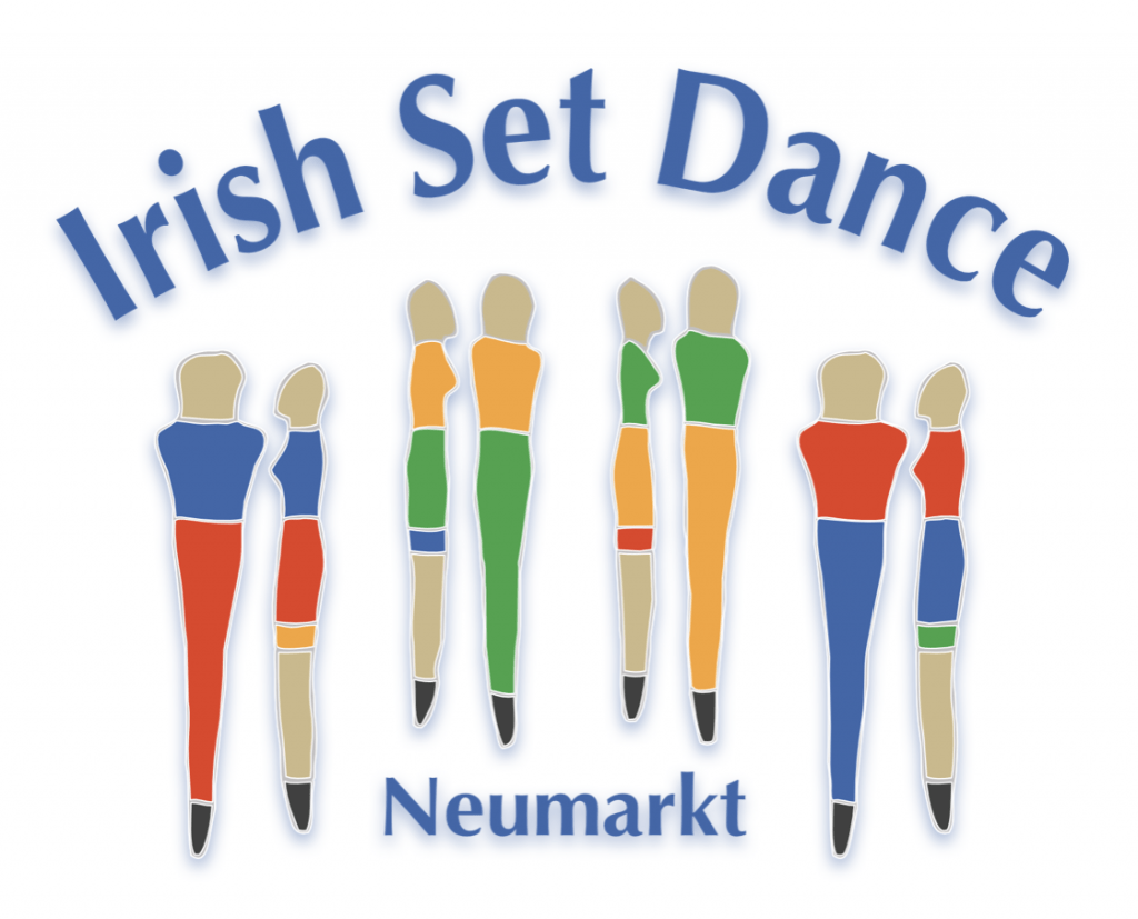Für unser Logo wurde aus der stehenden Gruppe mit drei „Grazien“ eine tanzende Achtergruppe mit vier Paaren – der klassischen Set Dance Tanz-Formation. Die Darstellung der Logo-Figuren knüpft übrigens an eines unserer Lieblings-Sets an, das „Merchant Set“ von Padraig & Roisin Mc Eneany, Drogheda, Co. Louth, Irland. Es symbolisiert das seitliche „Advance & Retire“ der Paare in der 1. Figur: „Tops turn left, Sides turn right“.