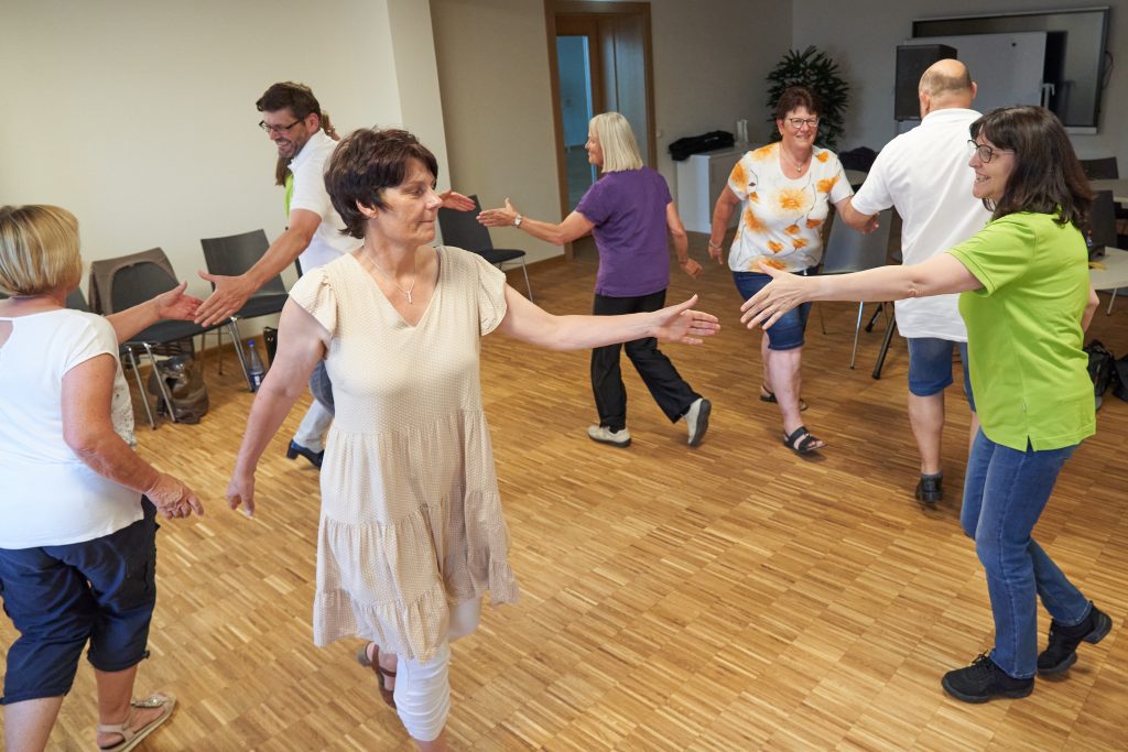 Manche Figuren erfordern eine geschickte Koordination von Fuß- und Armarbeit im Takt der Musik und wirken wie »Gehirn-Jogging« . Wenn es manchmal nicht gleich auf Anhieb klappen sollte, ist das überhaupt kein Problem, sondern immer ein Anlass für Heiterkeit und Lachen, das zur spielerischen Wiederholung einlädt.